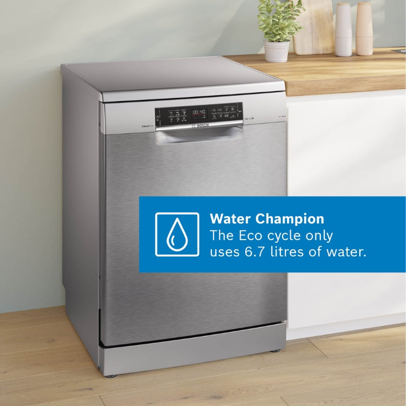 The Bosch Series 6 Dishwasher delivers premium cleaning power with intelligent connectivity, perfect for modern families who value both performance and efficiency. From delicate glassware to heavily soiled pots, Bosch takes care of it all — quietly and effectively