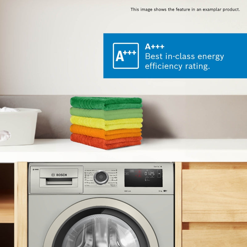Reduce the time you spend on ironing your clothes with the Bosch 9kg Front Loader Washing Machine, which has an Iron Steam Assist. This handy option will reduce up to 50% of wrinkles by applying steam care to your laundry. Your t-shirts will come out ready to wear and you will spend less time struggling to iron your linen and shirts.