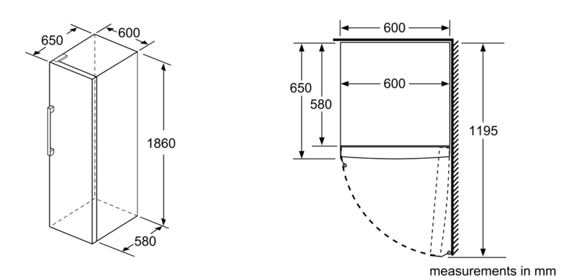 Dimensions: H 186 cm x L 60 cm x D 65 cm