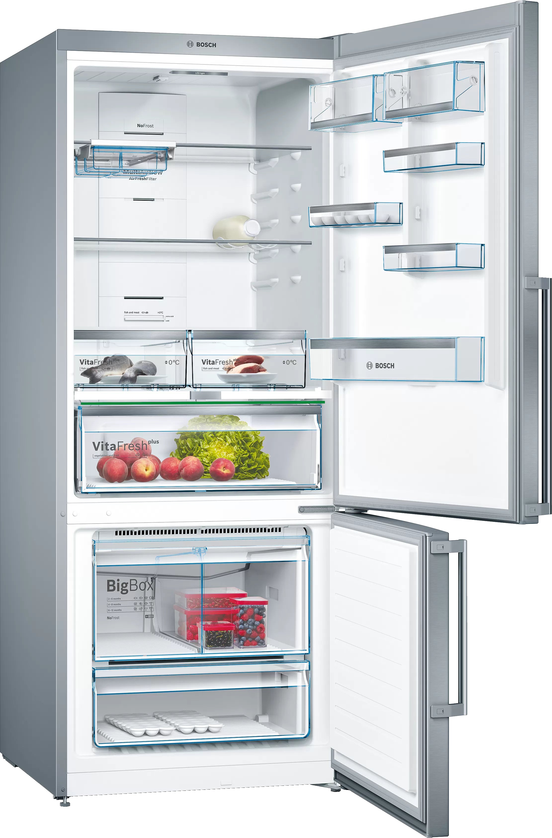Multi-Airflow systemblows gentle currents of cold air throughout the Bosch 521L Bottom Freezer. The fan-assisted MultiAirflow System causes gentle, even currents of cold air to emerge at all levels of the chilling and freezing area. Food flavours can now be retained for longer periods of time due to fewer temperature fluctuations.