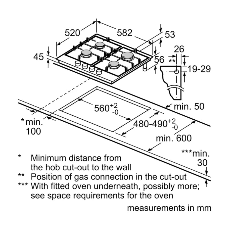 BOSH 60CM SERIES 2 GAS HOB STAINLESS STEEL – PGP6B5K60Z