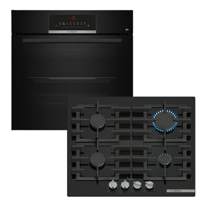 BOSCH GAS HOB 60CM BLACK TEMPERED GLASS SERIES 6 -PPP6A6I40Z + BOSCH 60CM BLACK BUILT-IN OVEN SERIES 6 - HBJ559EB6Z