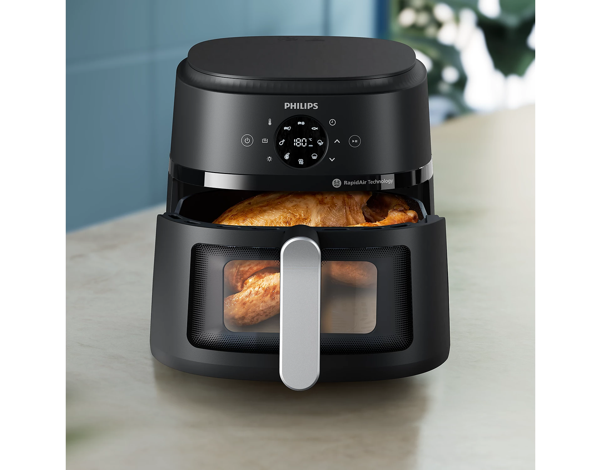 The Philips NA231/00 Airfryer from the 2000 Series is designed to transform everyday cooking into a healthier, more efficient experience. With its 6.2-liter capacity, this air fryer allows you to prepare large meals for families, easily accommodating up to 800g of fries, 8 chicken drumsticks, or 800g of vegetables in one go. Its RapidAir technology with a unique Starfish design ensures that hot air circulates rapidly and evenly, giving food a crisp exterior while keeping it tender inside—perfect for frying, roasting, grilling, baking, and reheating with little to no added oil.