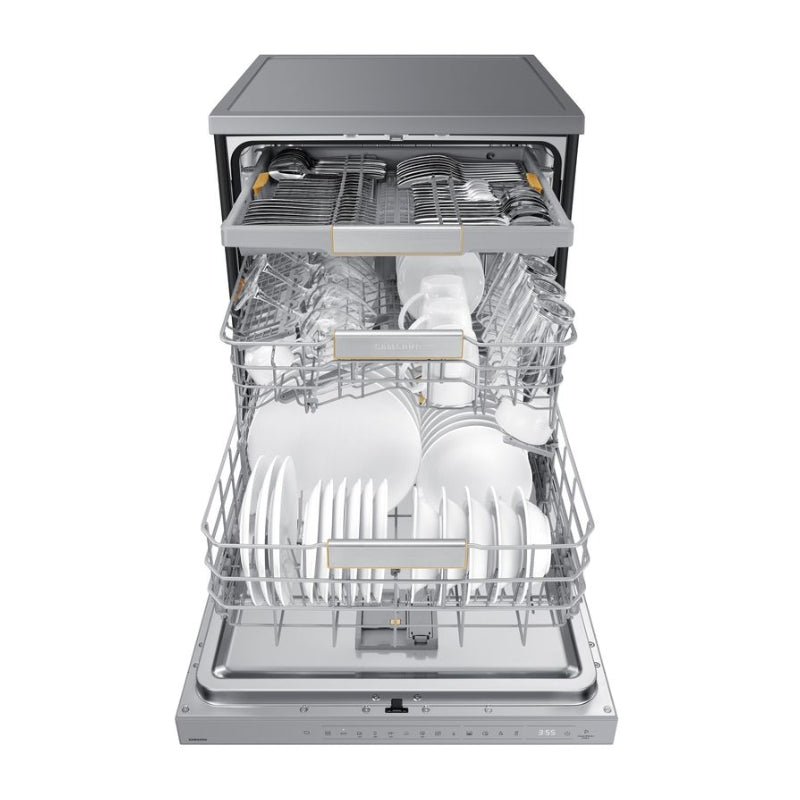 Experience efficient cleaning with the Samsung DW60BG850FSLFA dishwasher, featuring A+++ energy efficiency, WaterJet Clean technology, and SmartThings app support. Shop Now!