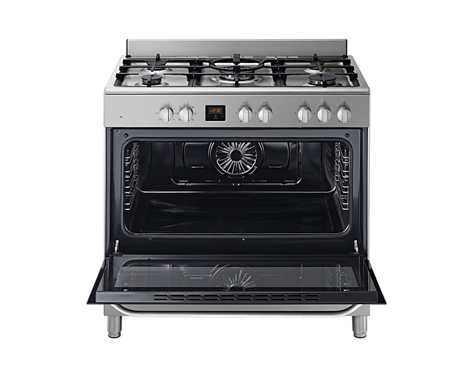 SAMSUNG 90CM GAS ELECTRIC COOKER 95L 5 GAS BURNER WITH TRIPLE FLAME WOK STAINLESS STEEL - NY90T5010SS