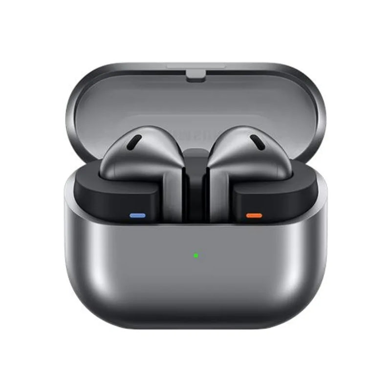 The Samsung Galaxy Buds 3 are sleek earbuds with an angled design bringing sound closer to your ears. They feature a new 11mm speaker for strong, dynamic sound and 24-bit CODEC for Hi-Fi sound experience. Galaxy AI enhancements allow for Adaptive EQ and ANC for a personalized listening experience.