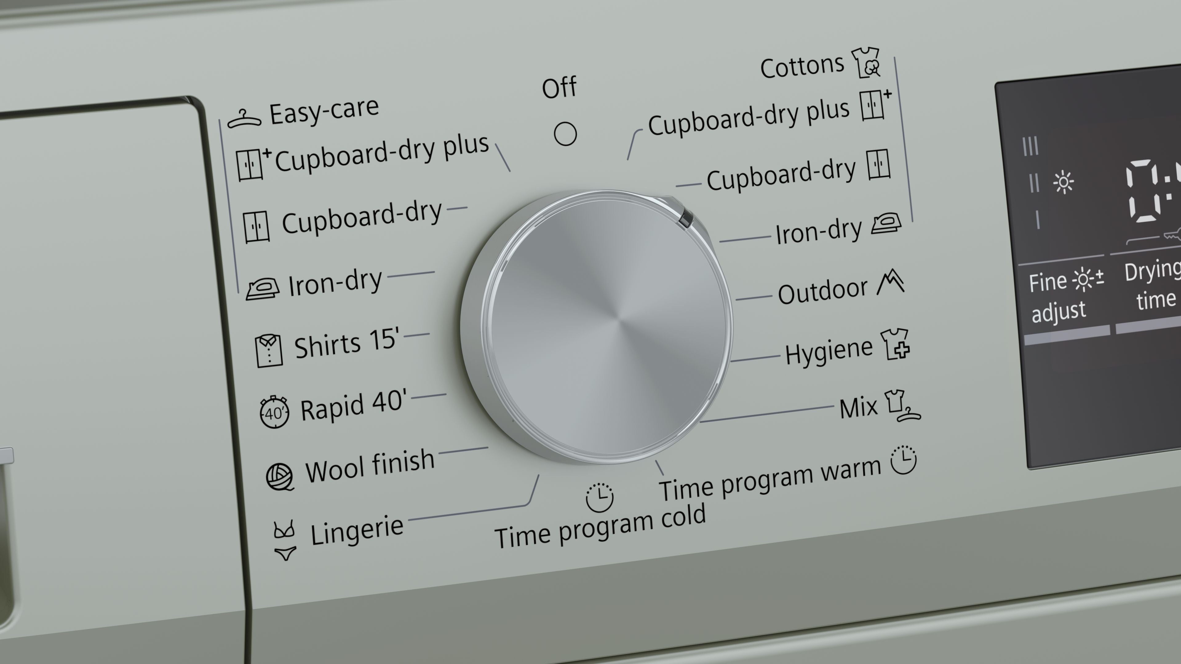 Functional textiles need gentle handling, even while drying. Glued seams are especially sensitive to heat. That’s why the outdoor-wear drying progamme maintains a low, constant temperature.