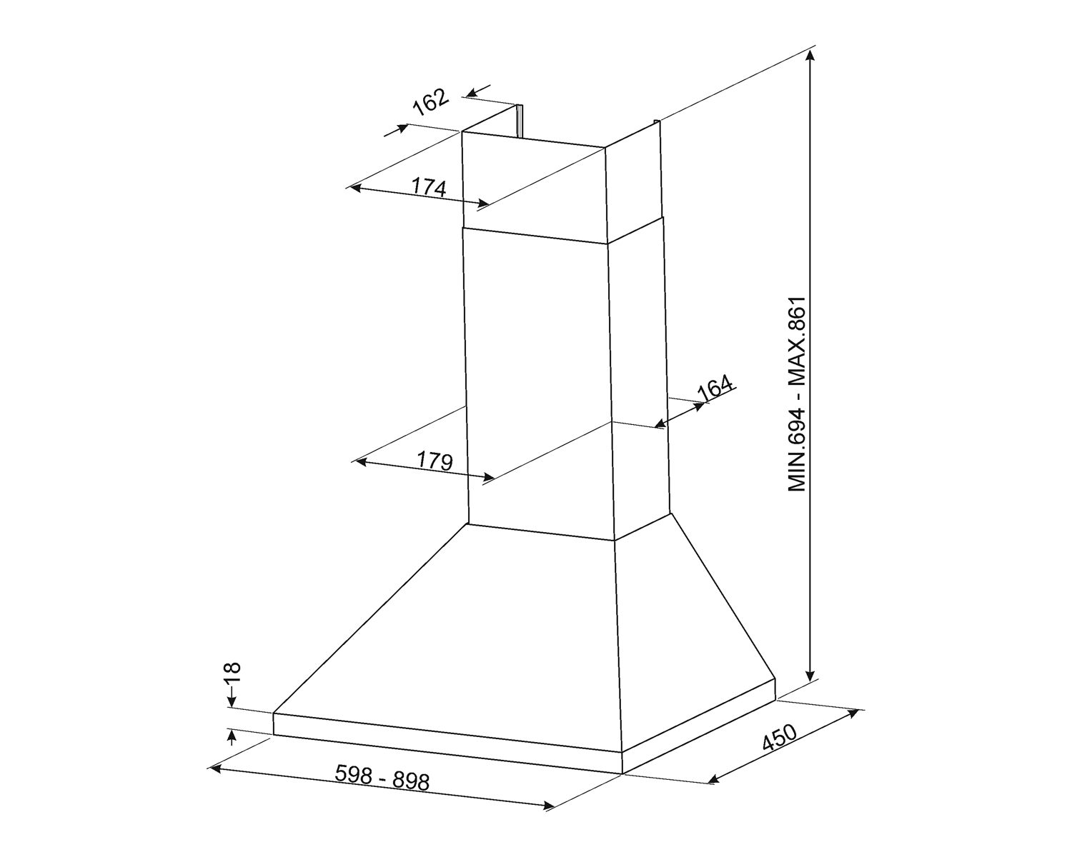 SMEG 90CM WALL MOUNTED EXTRACTOR STAINLESS STEEL - KDE900EX